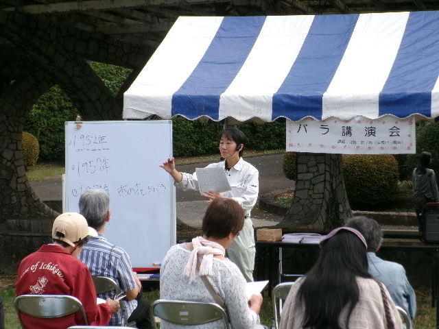 講演後には里見公園の秋バラを実際に見ながら先生に解説していただくバラ園ツアーも開催。
